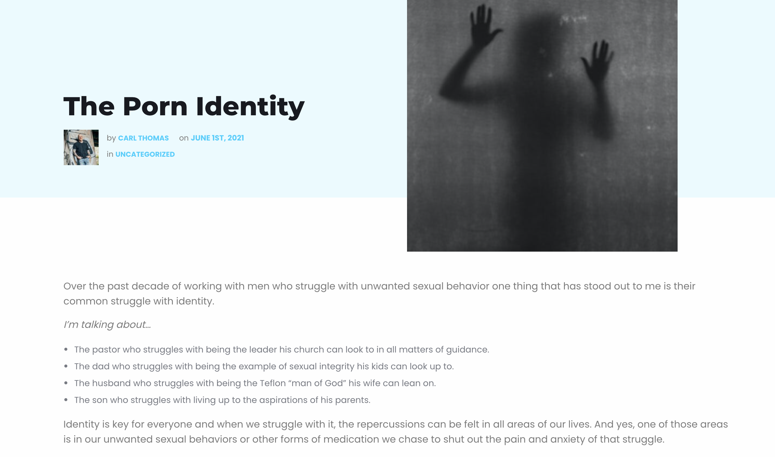 Understand over the past decade of working with men who struggle with unwanted sexual behavior one thing that has stood out to me is their common struggle with this question of identity.