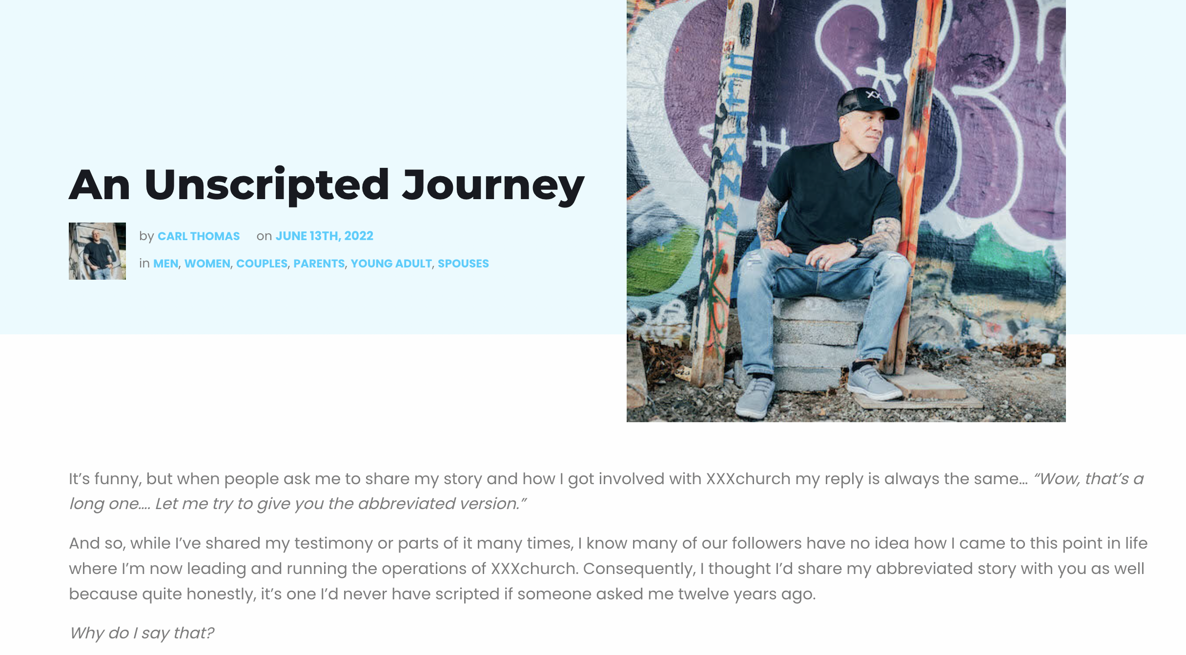 It's funny, but when people ask me to share my story and how I got involved with XXXchurch my reply is always the same… "Wow, that's a long one. Let me try to give you the abbreviated version."