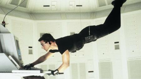 | | Tom Cruise em cena icônica de 'Missão: Impossível', de 1996 | | Imagem: Divulgação/Paramount Pictures |