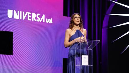 Anne Cleyanne Alves, vencedora da categoria Conscientização e acolhimento, dedicou a vitória às mulheres de sua família: a mãe, a noiva, a sogra. E, então, replicou o mérito a todas que fazem parte da iniciativa que fundou, a Filhas do Boto Nunca Mais. "Em primeiro lugar, dona Sônia. Mulher preta, periférica, diarista, que também teve seu corpo violado e abusado, mas que me deu a luz e que se sacrificou todos os dias para que eu pudesse estar aqui. Para minha família, minha noiva, minha sogra que está sentada ali, mas, principalmente, gente, hoje, nesse momento, tem meninas do Filhas do Boto Nunca Mais em Porto Velho online nas nossas redes sociais. Hana, nossa presidente, Brenda, nossa vice-presidente e toda a diretoria. São 82 meninas, eu queria muito poder falar o nome de cada uma de vocês, mas vocês sabem que vocês são um banzeiro. Para quem não conhece, para quem não é do norte, um banzeiro é quando o rio faz um movimento forte e ele tira a lama e tira as árvores da beira do rio e isso gera vida, nutre, e isso leva para o resto do bioma da Amazônia. E cada uma das meninas do Filhas do Boto Nunca Mais, vocês são um banzeiro de amor e de solidariedade. Que nós possamos falar em todos os cantos, em todos os lugares, que os corpos de mulheres e meninas pertençam somente a elas. E vai chegar o dia, sim, Pollyanna, que a gente não vai mais precisar trabalhar com isso. Professora Ana, vai chegar o dia que nós vamos comemorar, sim, seja de onde tiver, ou na dimensão que a gente estiver, esse Brasil, gente, realmente está em um novo começo de era. Gratidão, meninas!" Sabrina Parlatore: "Ela estava em tratamento, eu tinha acabado de passar pelo meu"  | | Anna Gabriella Antici é vencedora do Prêmio Inspiradoras 2022 na categoria Inovação em Câncer de Mama | | Imagem: Mariana Pekin/UOL |