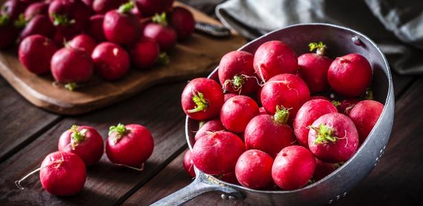 Se a sua salada de todos os dias precisa de um novo astral, incluir algumas fatias de rabanete cru é uma boa para renovar o sabor, conferindo ao prato o ardidinho e a crocância bem típicos desse vegetal. O rabanete está repleto de nutrientes: vitamina C, potássio, cálcio, magnésio, fósforo, cobre e zinco, além de fibras e antioxidantes. É pouco calórico, com apenas 14 kcal em 100 g. Faz bem para a pele - O rabanete contém bastante água, o que contribui com a saúde da pele. A vitamina C presente no alimento tem potencial antioxidante e previne o envelhecimento precoce, além de ser importante para a formação do colágeno. Também melhora a cicatrização de feridas. Aumenta a saciedade - Por ser rico em água e conter fibras, o rabanete confere saciedade, fazendo com que você se sinta "cheio" mais rapidamente e coma menos. Indiretamente, isso pode contribuir com o controle ou a perda de peso. |