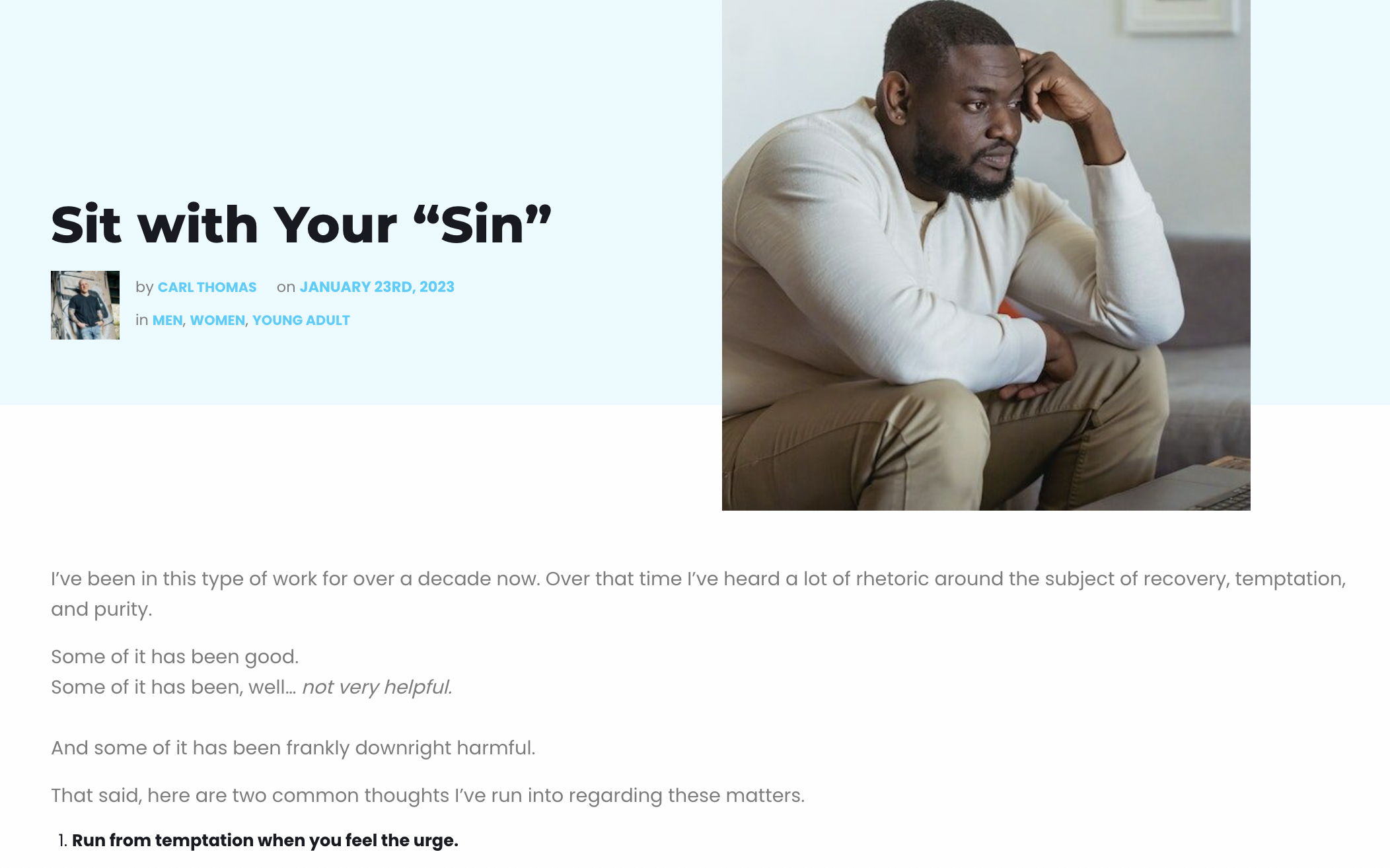 Hey L, I've been in this type of work for over a decade now. Over that time I've heard a lot of rhetoric around the subject of recovery, temptation, and purity. Some of it has been good. Some not so much. Two common thoughts I've run into regarding these matters are the following: 1. Flee from temptation! 2. If you fall, get back up on that horse right away. And truthfully, both those statements contain a lot of wisdom. But, they can also create some confusion. In this week's post I break these statements down and what sometimes gets missed in translation. So check it out here and let us know what you think in the comments. | |