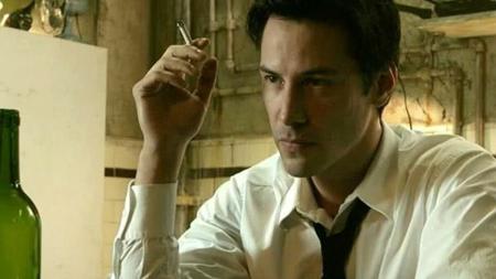 | | Para ser interpretado por Reeves, Constantine deixou de lado o sotaque britânico e os cabelos loiros | | Imagem: Divulgação/Warner Bros. |