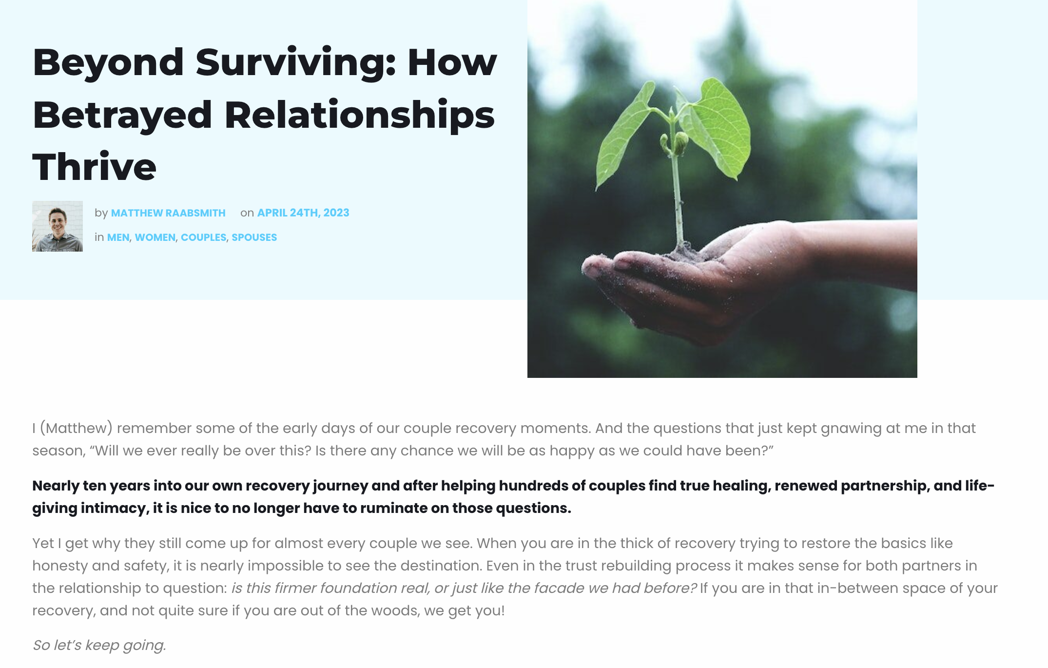 Well, in this week's post Matthew Raabsmith talks about this very topic and shares something that may surprise many of you: Couples that are able to grieve their story are able to unite around this grief.