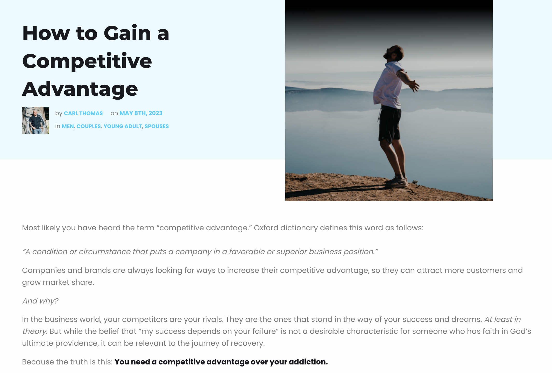 And so, if we are to face those things in our life we need an advantage. We need something that's going to allow us to over come all the hurdles and challenges we will surely face throughout the recovery journey.