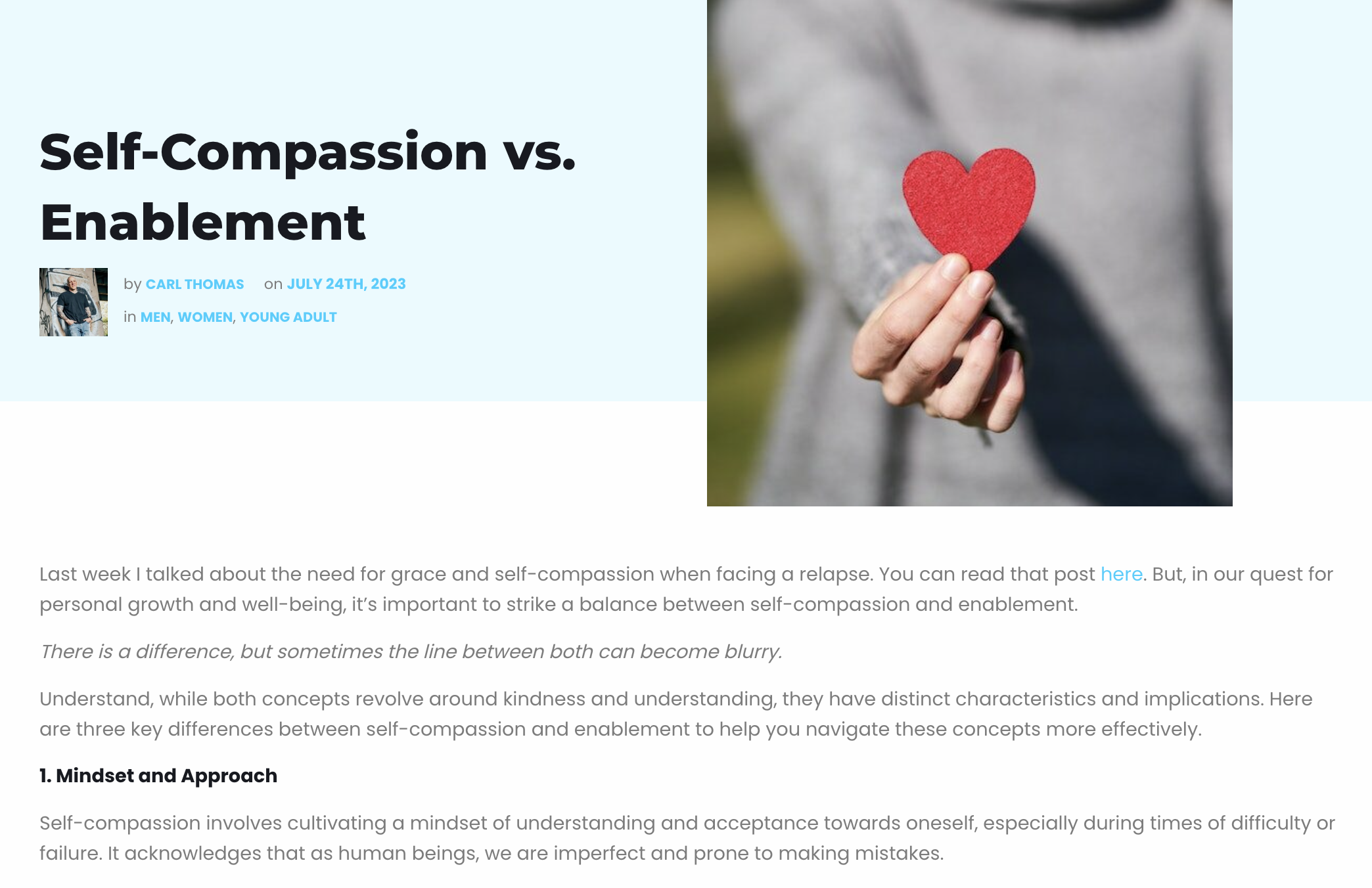 Last week I talked about the need for grace and self-compassion when facing a relapse. But, in our quest for personal growth and well-being, it's important to strike a healthy balance between self-compassion and enablement.