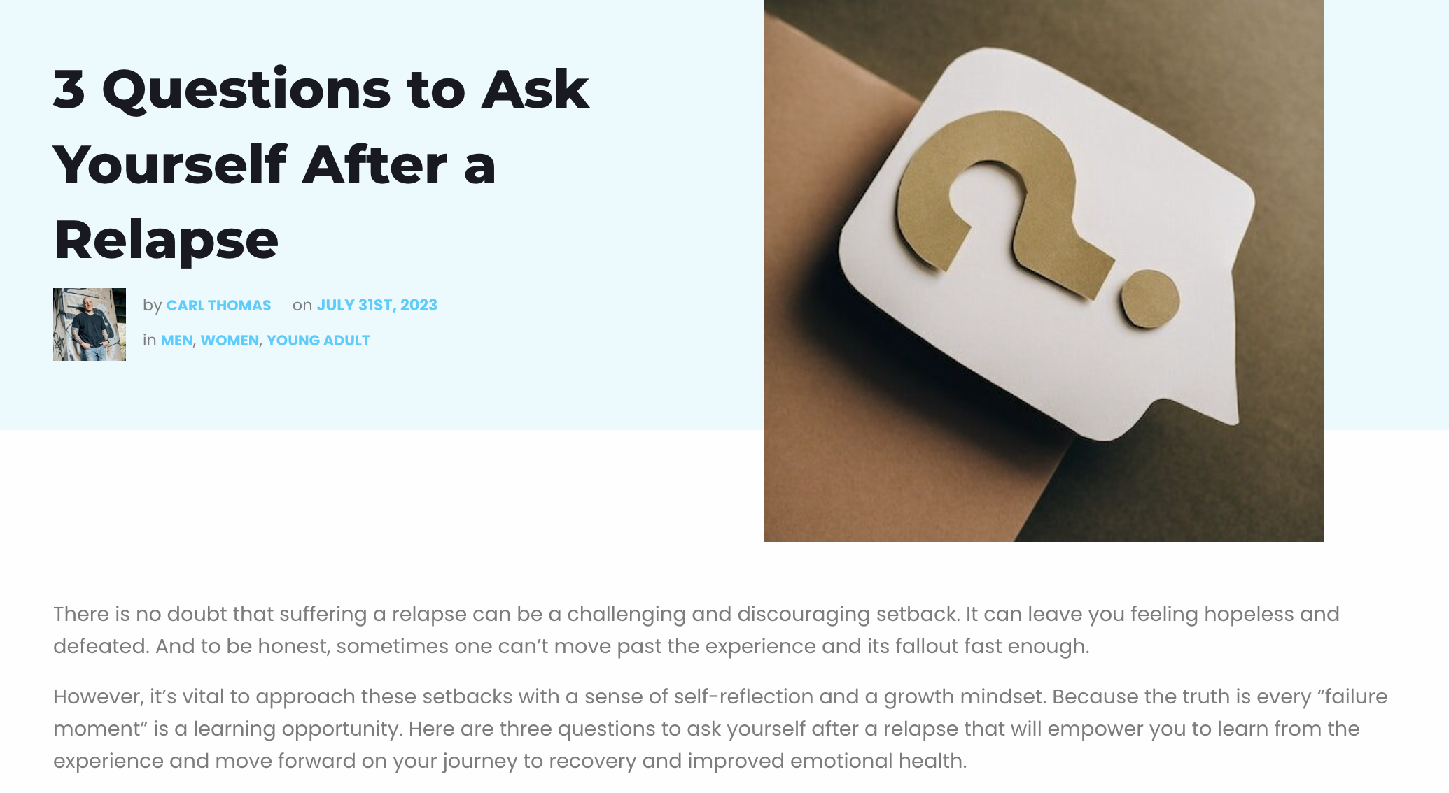 So in this week's post I cover three important things you should ask yourself after a relapse. And after you're done reading, let us know what you think in the comments.
