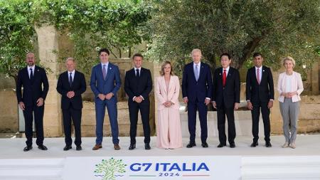 1. Fed mantém juros e reduz expectativa de dois cortes neste ano. A manutenção das taxas entre 5,25% e 5,50% era esperada. A informação mais aguardada era sobre o sinal que o BC americano daria ontem sobre a política monetária até o final do ano. No relatório trimestral, o Fed aumentou de quatro para 11 o número de diretores que projetam a necessidade de apenas um ou nenhum corte de 0,25 ponto percentual. Oito diretores, porém, ainda acreditam em duas reduções. A mediana das previsões indica apenas um corte, ante a projeção de que haveria dois na reunião anterior. Mais cedo, saiu a inflação de maio, que foi abaixo do previsto. O resultado animou o mercado e as bolsas americanas fecharam em altas consistentes, apesar da cautela dos integrantes do Fed. 2. G7 fecha acordo para destinar US$ 50 bilhões à Ucrânia. O empréstimo até o final deste ano para a reconstrução da infraestrutura do país deverá ser garantido com os rendimentos de ativos russos congelados, anunciou a França na véspera da reunião do grupo que começa nesta quinta, na Itália. Na Europa, há cerca de US$ 300 bilhões em ativos russos bloqueados. A ajuda à Ucrânia será um dos principais temas da cúpula do G7 que terá a participação dos presidentes Lula e do ucraniano Volodymyr Zelensky como convidados. Estados Unidos e Ucrânia vão assinar no encontro um acordo de segurança que prevê o fornecimento de armas e assistência, informou a Casa Branca.  | | Líderes da União Europeia, Alemanha, Canadá, França, Itália, EUA, Japão e Reino Unido em reunião do G7, na Itália | | Imagem: Mandel Ngan / AFP |