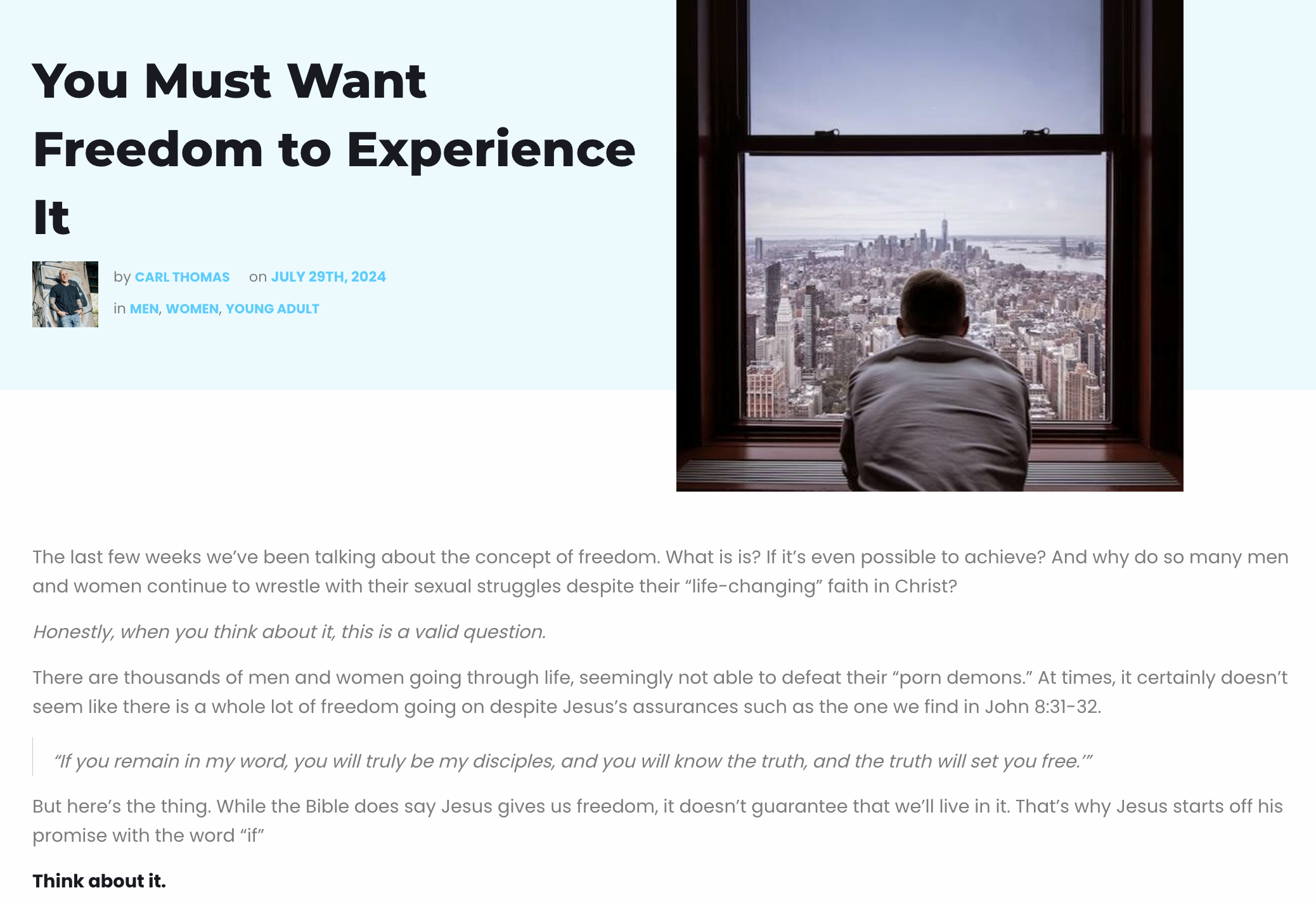 As you know (if you've been following along) I've been talking a lot about freedom. Specifically...freedom from porn and what that tangibly looks like.