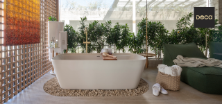 | | Balnear Deca leva novas leituras a referências históricas em sala de banho que ressalta design e tecnologia voltados para o conforto pleno