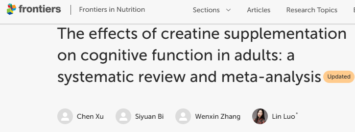 Xu C, Bi S, Zhang W and Luo L (2024) The effects of creatine supplementation on cognitive function in adults: a systematic review and meta-analysis. Front. Nutr. 11:1424972. doi: 10.3389/fnut.2024.1424972