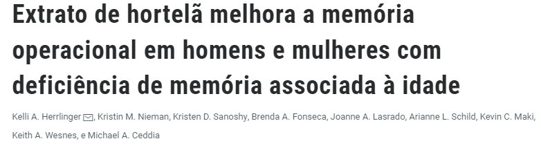 | "Estes resultados sugerem que o extrato distinto de hortelã pode ser uma intervenção nutricional benéfica para a saúde cognitiva em idosos com IAM (comprometimento de memória associado à idade)." |