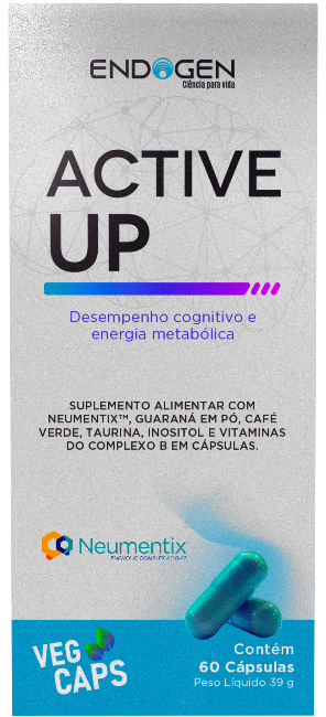 | Fantástico, não é mesmo? Além disso, os participantes que consumiam mais colina fizeram testes cognitivos e, também, apresentaram os melhores resultados de memória e linguagem. É por isso que o EXTRATO DE HORTELÃ (mais especificamente o Ácido Rosmarínico) e a COLINA podem ser fortes defensores da sua memória e do seu cérebro. Duas substâncias que podem te ajudar nos frequentes esquecimentos da sua Memória de Curto Prazo. Infelizmente, é muito difícil consumir Extrato de Hortelã diariamente. E também é complicado selecionar todos os dias os alimentos específicos para absorver a Colina. Pensando em facilitar essa "nutrição do cérebro", a Endogen criou o ACTIVE UP. | Ele reúne o Extrato de Hortelã patenteado (Neumentix™) e a Colina em um único produto. Além disso, possui Cafeína, Taurina e Inositol, substâncias que podem auxiliar o foco e raciocínio. Para fortalecer a fórmula, os profissionais da Endogen que criaram esse produto exclusivo acrescentaram Vitaminas B6, B12, e ácido clorogênico. Todos pensados para funcionarem como "aliados do cérebro". | Para ajudar a sua memória, fizemos condições exclusivas para você: | |