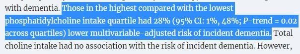 - ***Ylilauri MPT, Voutilainen S, Lönnroos E, Virtanen HEK, Tuomainen TP, Salonen JT, Virtanen JK. Associations of dietary choline intake with risk of incident dementia and with cognitive performance: the Kuopio Ischaemic Heart Disease Risk Factor Study. Am J Clin Nutr. 2019 Dec 1;110(6):1416-1423. doi: 10.1093/ajcn/nqz148. PMID: 31360988.