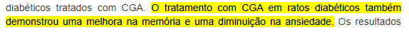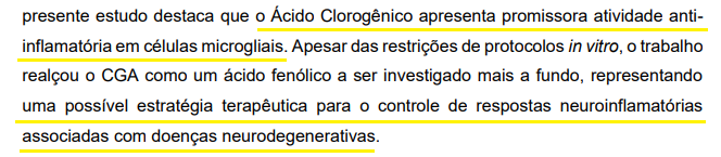 | Vale ressaltar que entre as "doenças neurodegenerativas" mais conhecidas estão o Alzheimer e o Parkinson. Outro estudo de 2012 analisou o efeito do ácido clorogênico (CGA) em ratos. Veja o que concluíram: |