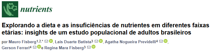 | Referência bibliográfica: | - Fisberg, M.; Duarte Batista, L.; Previdelli, AN; Ferrari, G.; Fisberg, RM Explorando a dieta e as insuficiências de nutrientes em todas as faixas etárias: insights de um estudo populacional de adultos brasileiros. Nutrients 2024 , 16 , 750. https://doi.org/10.3390/nu16050750