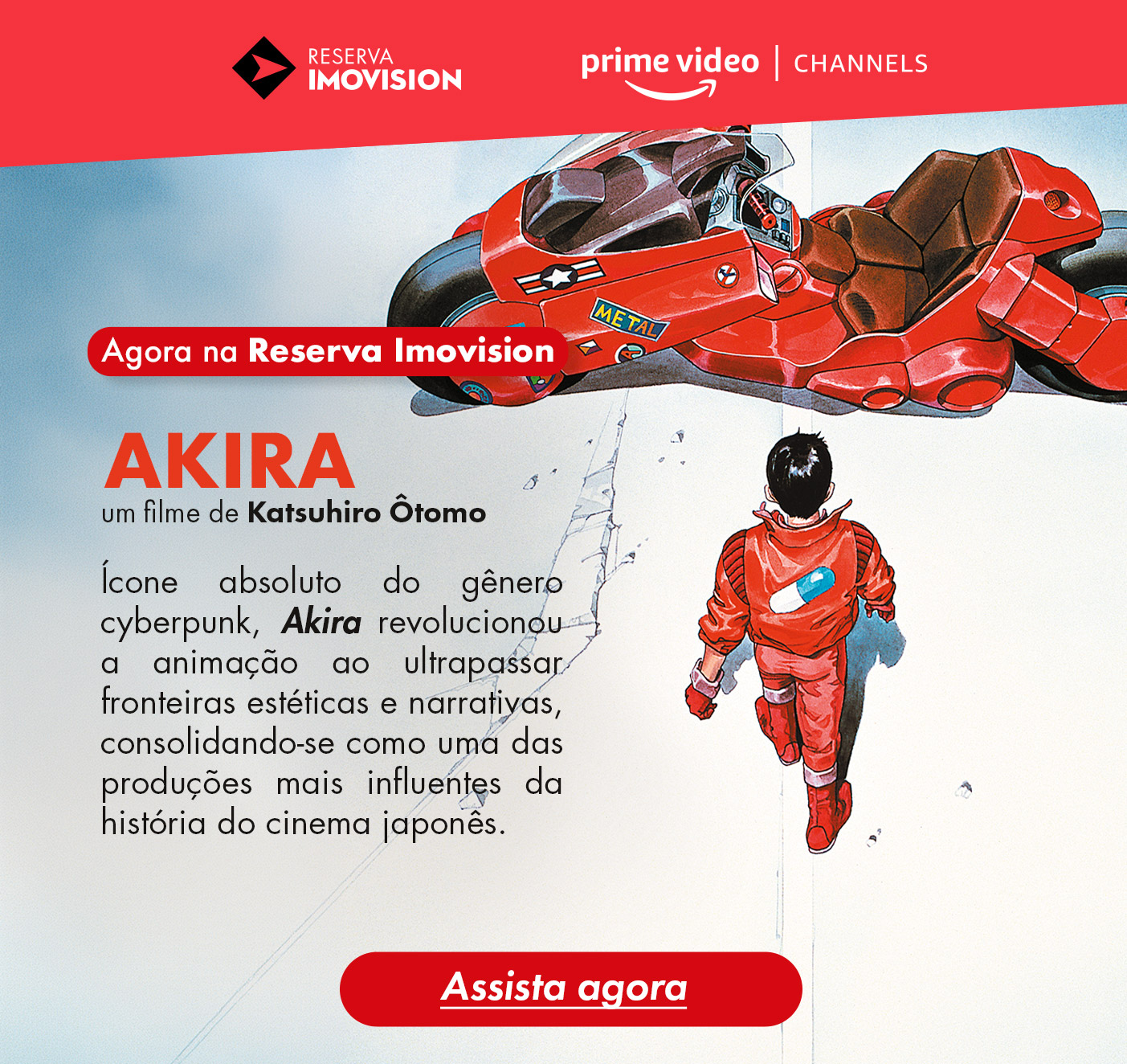 Sinopse: Em uma Neo-Tóquio distópica de 2019, reconstruída três décadas após uma explosão nuclear causada pelo governo, o motoqueiro adolescente Tetsuo desenvolve poderes psíquicos incontroláveis e perigosos após um acidente. Seu melhor amigo, Kaneda, tenta salvá-lo enquanto enfrenta uma conspiração militar que esconde segredos sobre cobaias humanas e o misterioso "Akira".